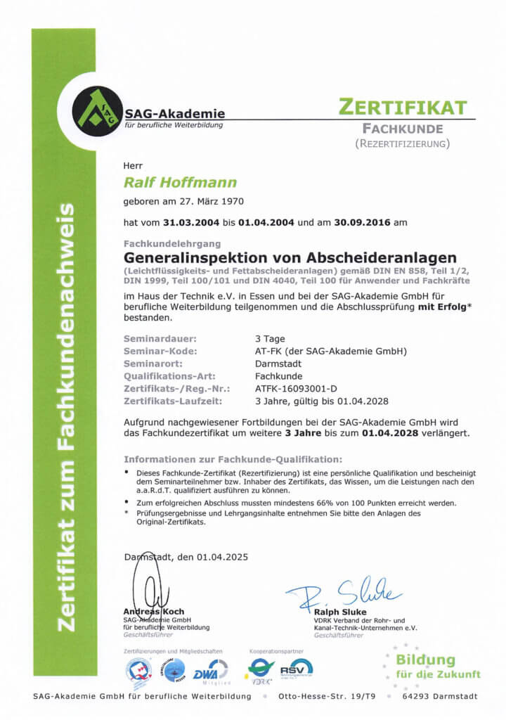 Neben der klassischen Abholung und Sammlung von flüssigen Abfällen haben wir entlang der spezifischen Bedürfnisse unserer Kundschaft zusätzliche Dienstleistungen in unser Programm aufgenommen und betreuen Sie auch gerne in allen Belangen der folgenden Tätigkeitsgebieten: Abwassertechnische Anlagen / Öl- und Fettabscheider, Rohr- und Kanalreinigung, Kanalinspektion, Sanierung von Kanälen und Rohren, Industriereinigung und Sanierung von WHG Flächen und sonstige kommunale Dienstleistungen.